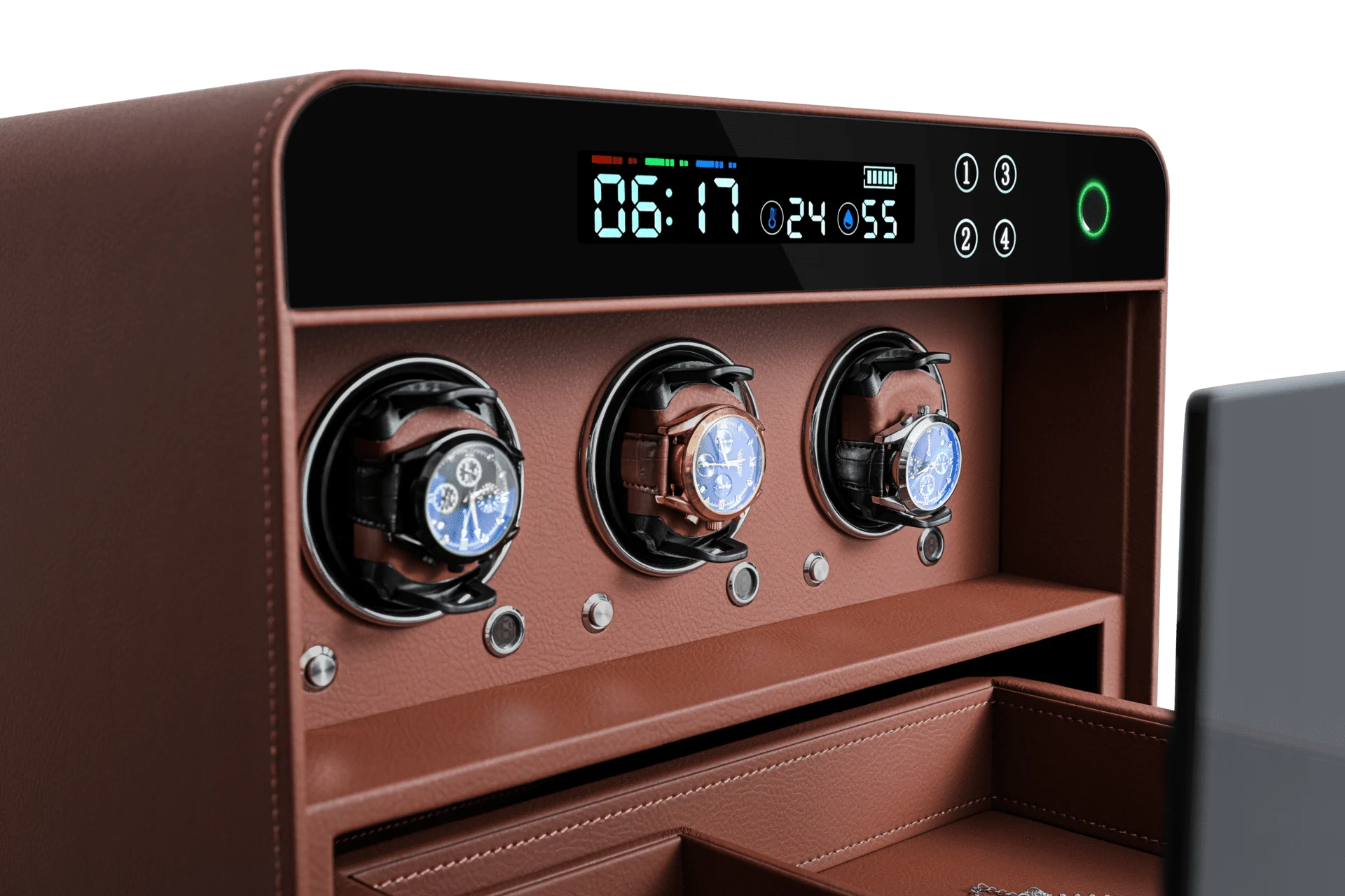 Aynı anda 3 adet otomatik saati sarma kapasitesine sahip olan ALÂ Nüans, daha kompakt koleksiyonlara sahip kullanıcılar için ideal bir seçenektir. Saatlerinizi düzenli ve daima kullanıma hazır halde tutar.